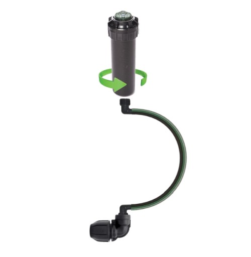 Dzięki elastycznemu wężowi możemy umieścić zraszacz w dowolnym miejscu i na dowolnej głębokości. Wąż możemy również docinać według potrzeb.
