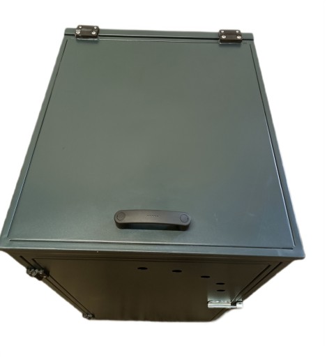 - Zabudowa posiada drzwi frontowe do wjazdu pojemnikiem i podnoszoną do góry klapą z blokadą wysokości.