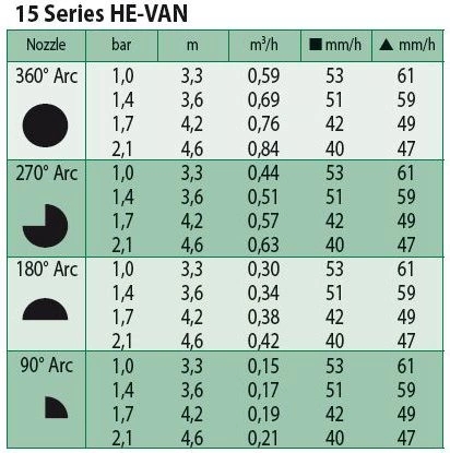 - Dysze Rain Bird HE-VAN pozwalają uzyskać wartość DULQ wyższą średnio od 70% — to ponad 40% lepiej, niż dysze o zmiennym łuku dostępne do tej pory na rynku.