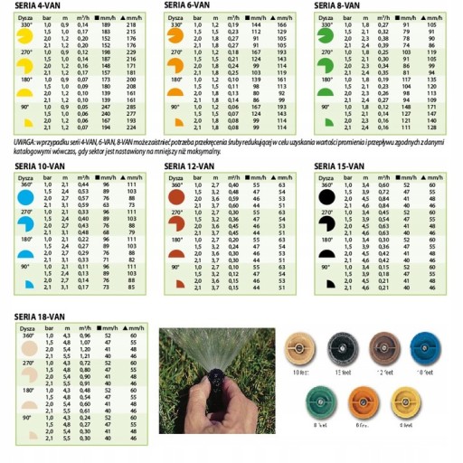 Dysze te są wprost idealne do nawadniania terenów zieleni o nieregularnym ukształtowaniu powierzchni a także krzewów ze względu na łatwość regulacji sektora nawadniania. WŁAŚCIWOŚCI : Dysze oznaczone kolorami, co umożliwia łatwą identyfikację promienia i sektora.