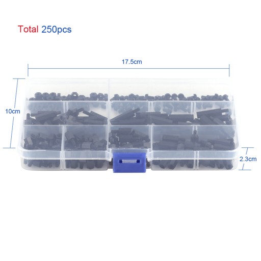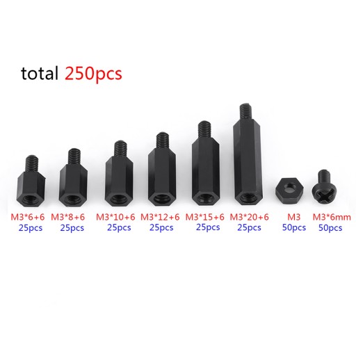 250 szt. Nylon M3 kolumna sześciokątna męska podkładka dystansowa zestaw asortymentowy nakrętek śrubowych (męski dystans M3 A)