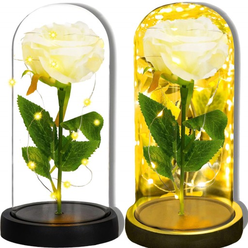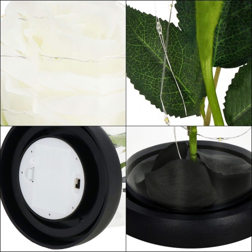 Róża wygląda ultra realistycznie, do złudzenia przypomina prawdziwy kwiat. Efekt wizualny - połączenie szklanego klosza, światła i kwiatu, robi duże wrażenie i nasuwa na myśl bajkowy klimat.