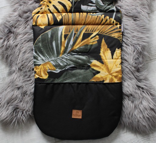 Wzory: liście monstera złoto czarne duże + podnóżek czarny