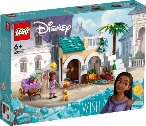 Zainspiruj dzieci i fanów Disneya w wieku od sześciu lat do zbudowania zestawu LEGO® ǀ Disney Asha w Rosas (43223) z nadchodzącego filmu Walt Disney Animation Studios Życzenie. Zestaw zawiera targowisko ze schodami i balkonem, zaplecze ze stołem, wózek, minilaleczkę LEGO ǀ Disney i dwie figurki LEGO ǀ Disney.