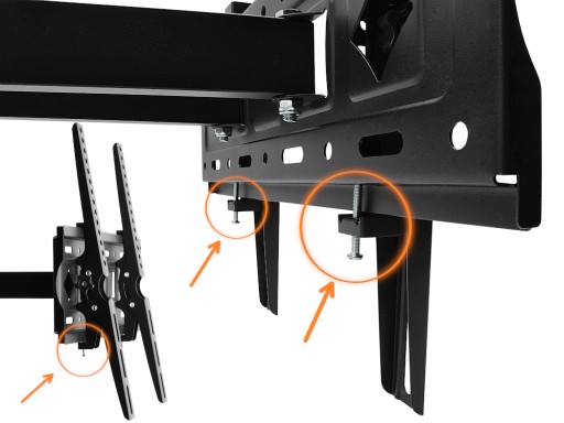Uchwyt wyposażony w dodatkowe śruby zabezpieczające telewizor przed przypadkowym strąceniem