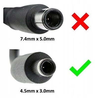 ✅Proszę zwrócić uwagę na rozmiar wtyku. Aukcja dotyczy cienkiego wtyku o wymiarach 4.5mm x 3.0mm - jest o wiele mniejszy od standardowego wtyku Dell 7.4mm x 5.0mm! ✅