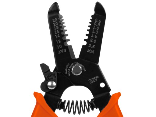 Wielofunkcyjny ściągacz izolacji który może służyć jako szczypce oraz cęgi do przewodów.