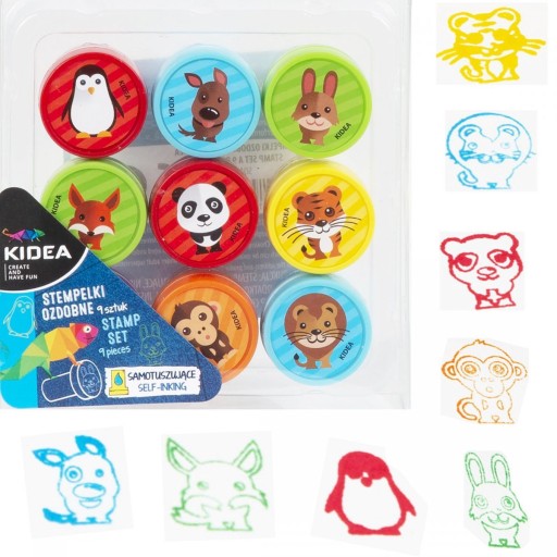 Pieczątki STEMPELKI OZDOBNE ZWIERZĘTA 9 SZT. KIDEA