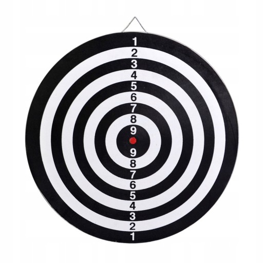 - Zestaw zawiera: tarczę dwustronną oraz 6 rzutek (3 czerwone i 3 zielone)