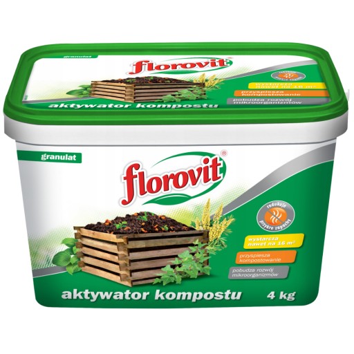 Florovit aktywator kompostu, skutecznie przyśpiesza proces kompostowania pozostałości organicznych z domu oraz ogrodu. Aktywator wspomaga powstawaniu naturalnej próchnicy a także pobudza rozwój włąsciwych mikroorganizmów w podłożu, a dodatkowo redukuje przy tym, nieprzyjemne zapachy.