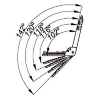 - Dodatkowe funkcjonalności: regulacja kąta nachylenia, 5 położeń, od 102° do 142°.
