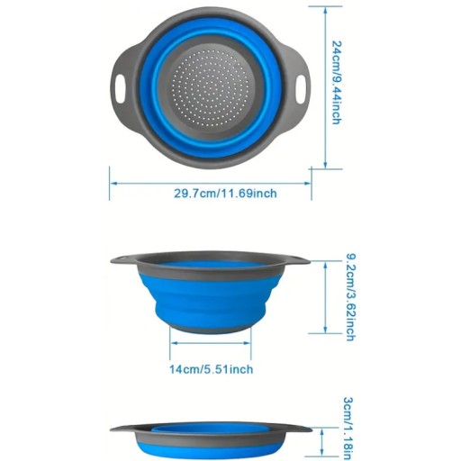 SKŁADANY SILIKONOWY DURSZLAK OKRĄGŁY SITKO CEDZAK OCIEKACZ Z UCHWYTAMI