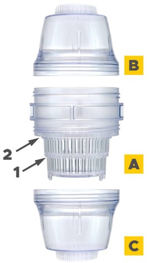5. Upewnij się, że większość cukru-pudru opadła na dno pojemnika C, po czym odkręć wyłącznie pojemnik C.