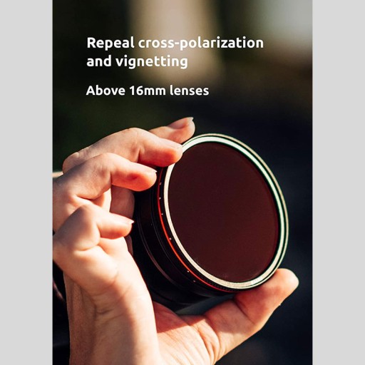 - Budowa: Wbudowana blokada zakresu przyciemnienia (Hard Stop) pozwoli uniknąć zjawiska polaryzacji krzyżowej oraz winietowania powyżej 16mm na pełnej klatce