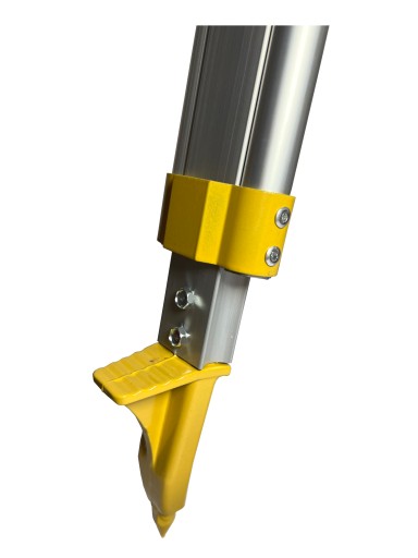 Lekki aluminiowy statyw przeznaczony pod niwelator lub lekki sprzęt pomiarowy.