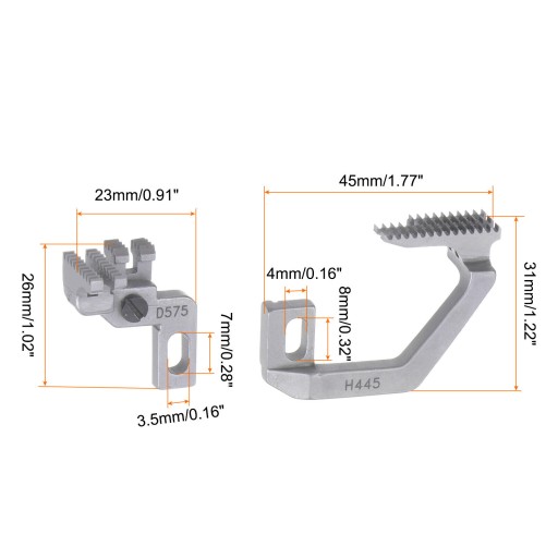 H445 ząbki przednie, D575 (D440) ząbki tylne-pomocnicze do owerloków. Transporter, ząbki do lekkiego i średniego szycia do owerloków 4 nitkowych.