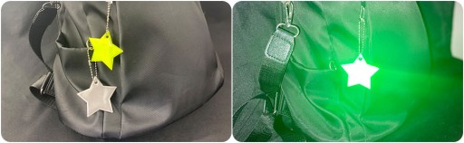 Odblaskowa zawieszka w kształcie gwiazdy zapewnia bezpieczeństwo podczas użytkowania w ciemności. Światło gwiazdy zapewnia dobrą widoczność w odległości 200 metrów i zapobiega nagłemu wypadkowi.