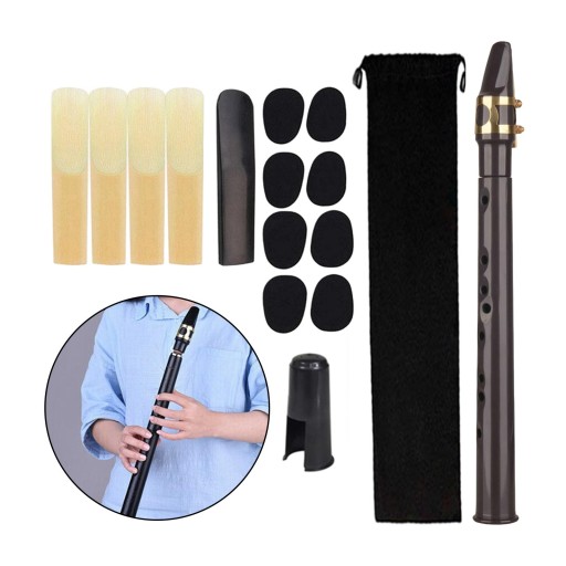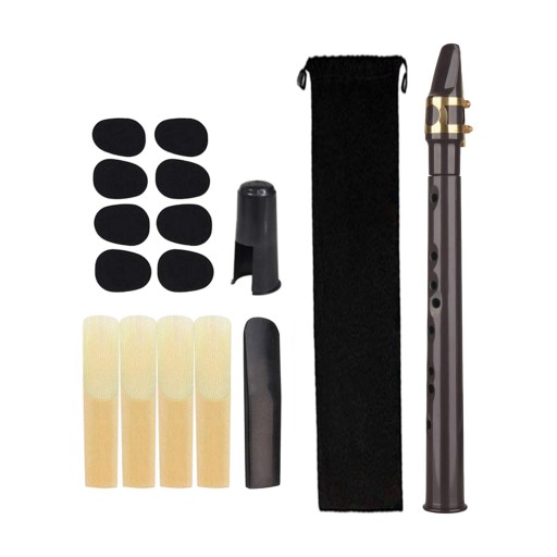 [Kompletny zestaw]: Zawiera 1 kieszonkowy saksofon, 5 stroików, 8 podkładek, 1 ustnik, 1 aksamitną torbę, 1 tabelę palcowania. Łatwy do gry.