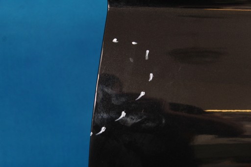 - USZKODZIENIA ZAZNACZONO NA DRZWIACH
