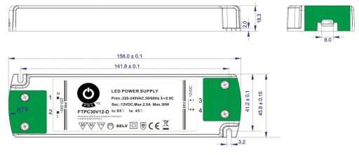 БЛОК ПИТАНИЯ POS 30Вт 2,5А 12В IP20 FTPC30V12-D
