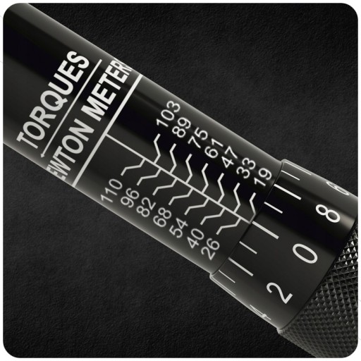 Skala umieszczona na kluczu wyrażona jest w niutonometrach (Nm) i kilogramach na metr (kg-m).
