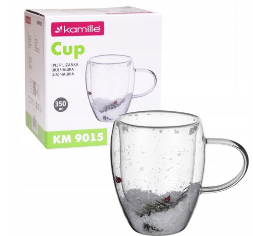 KUBEK SZKLANKA DO KAWY I HERBATY Z PODWÓJNEGO SZKŁA 1 SZT. 350 ML KAMILLE KM-9015