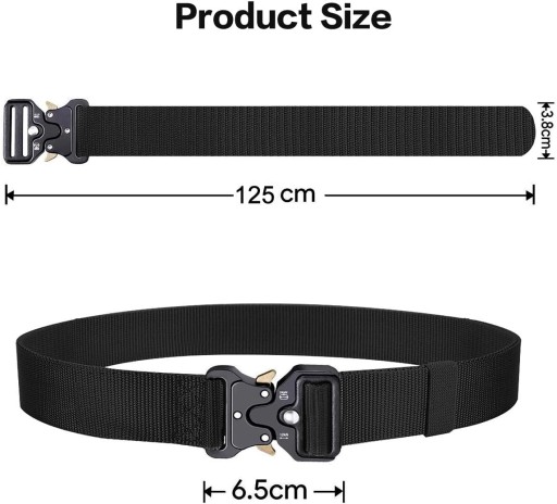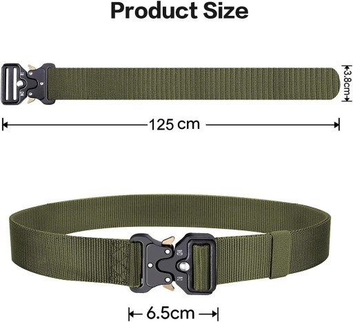 Wysokiej jakości nylon: pasek z klamrą z funkcją zwolnienia, wykonany z przyjaznego dla środowiska materiału nylonowego 1000D o wysokiej wytrzymałości i szybkości działania. Jest oddychający i bardzo wygodny w codziennym użytkowaniu Klamra z funkcją zwolnienia: Intuicyjna i płynna funkcja zwolnienia, wystarczy samoczynne użycie wyłączników. Jeśli aktywna jest tylko jedna karta, połączenie będzie nadal blokowane automatycznie. paska taktycznego: 125 cm, szerokość: 3,8 cm, pasuje do 30-43. Wytrzymała konstrukcja: ten pas taktyczny ma dołączoną wojskową klamrę wykonaną z wytrzymago metalu. Maksymalny ciężar nośny 500 kg, szeroko stosowany do ogólnego szkolenia lub wypraw kempingowych na zewnątrz. Szerokie zastosowanie: dziesięć pasów użytkowych, które nadają się do codziennego użytku, pracy, bezpieczeństwa, treningu, walki, organizacji, zawodów, sportów na świeżym powietrzu, polowań, wędrówek, biwakowania, wspinaczki, jazdy na rowerze, podróży, przetrwania w dziczy itp. Opis produktu