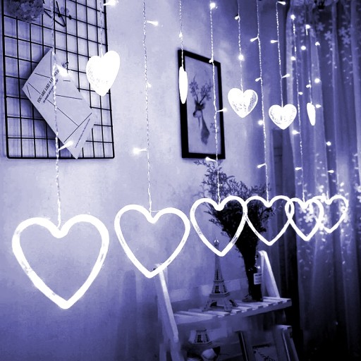 Niezwykle efektowna dekoracja walentynkowa - ŚWIECĄCE TŁO w postaci pionowo wiszących serduszek na dwóch różnych długościach przewodu