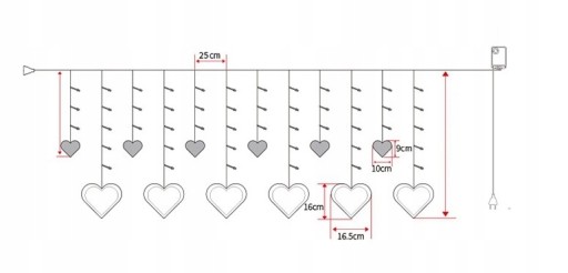 * szerokosc dużego serduszka 16,5 cm , szerokosc małych serduszek 10cm