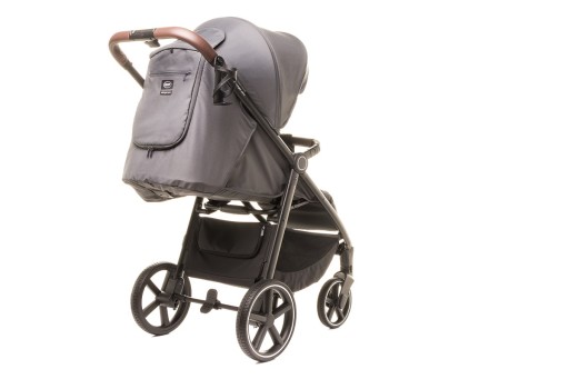 Zarówno rączka do prowadzenia wózka jak i barierka bezpieczeństwa obszyte są ręcznie wykańczanymi skórzanymi detalami.