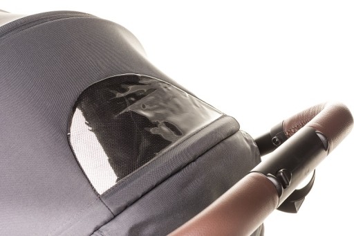 Wózek posiada przedłużaną, multifunkcją budkę, która chroni malucha przed wiatrem, słońcem i deszczem.