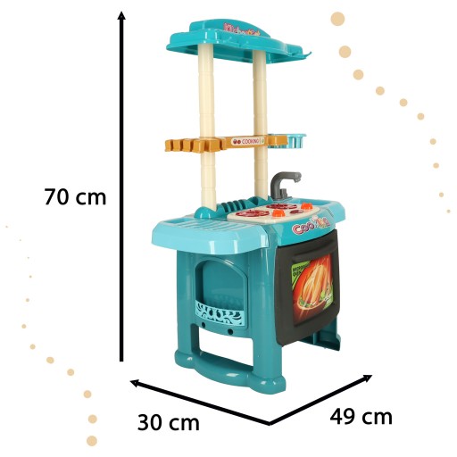 Kuchnia plastikowa dla dzieci z oświetleniem i kranem niebieska