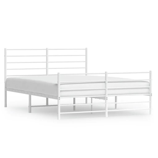 Metalowa rama łóżka z wezgłowiem i zanóżkiem, biała, 120x190 cm