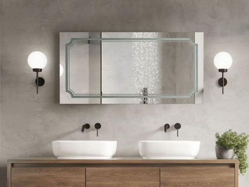 W łazience nie może zabraknąć jednego - lustra. By zagwarantować sobie komfortowe korzystanie z tego pomieszczenia, warto postawić na produkt taki jak ten: wykonany z wysokiej jakości materiałów, łatwy w czyszczeniu i przyciągający uwagę. Lustro posiada wbudowane oświetlenie LED, dzięki któremu poranna pielęgnacja będzie jeszcze przyjemniejsza. Oprócz tego część oświetleniowa nakłada ciekawy wzór na taflę lustra, która na pewno zachwyci twoich domowników.
