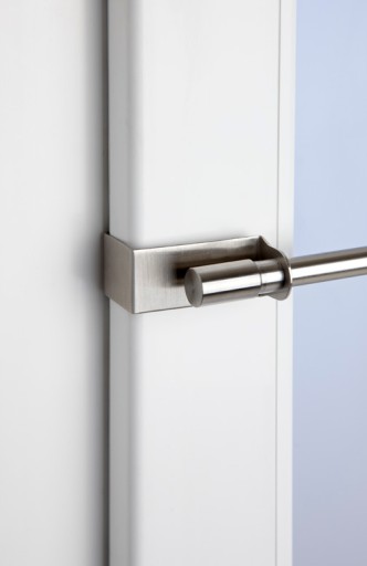Karnisz mocowany jest za pomocą specjalnego uniwersalnego uchwytu.Daje to stabilne podparcie i jednocześnie nie niszczy okna.