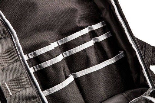Plecak wyposażony jest w 4 zewnętrzne i 18 wenętrznych kieszeni na narzędzia ułatwiających przechowywanie i transport.