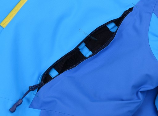Wewnątrz kurtki znajduje się elastyczna siatkowa kieszeń na gogle oraz dodatkowa wewnętrzna kieszeń na portfel lub komórkę: