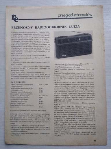 Tranzystorowy odbiornik radiowy.Dane techniczne.Opis działania.Schemat ideowy.Na tranzystorach podane napięcia.A w tabeli podane napięcia na nóżkach układów scalonych.Na ostatniej stronie jest ocena eksploatacyjna odbiornika.