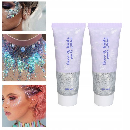 2 szt. Żel brokatowy do twarzy i ciała Holograficzny żel brokatowy do ciała Cekinowy żel brokatowy do ciała, twarzy, włosów i ust 50 ml