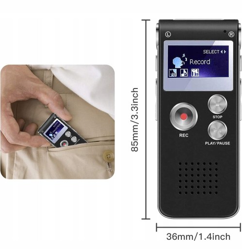 ПОРТАТИВНЫЙ ЦИФРОВОЙ ДИКТОФОН С ОБНАРУЖЕНИЕМ ЗВУКА MP3 8 ГБ ПОЛЬСКОЕ МЕНЮ