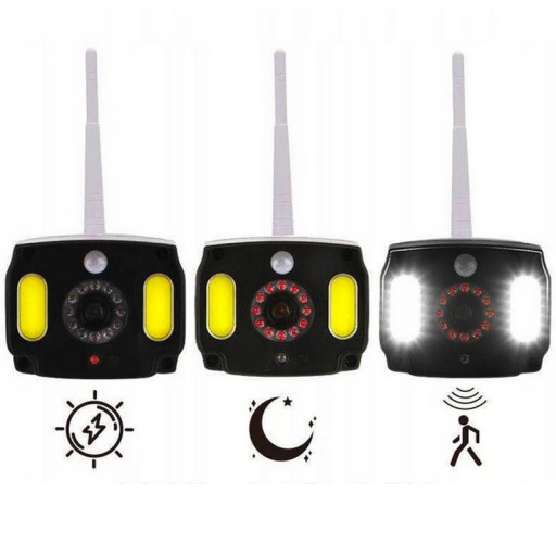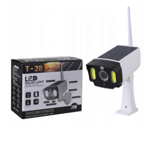 LAMPA SOLARNA ATRAPA KAMERY 2W1 CZUJNIK RUCHU 20W LED COB