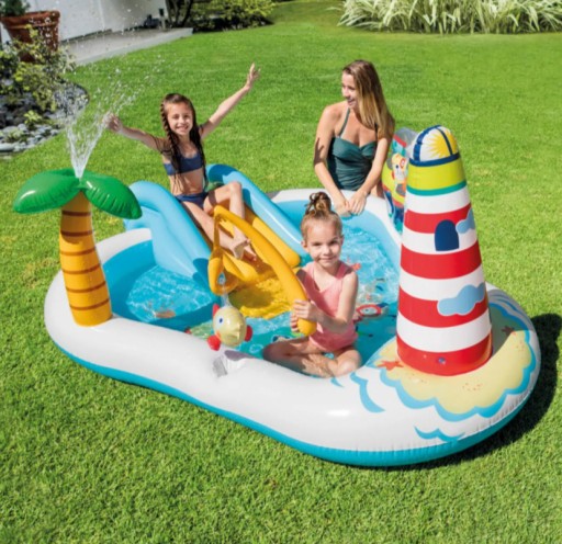 Dmuchany basen Intex oferuje wiele możliwości zabawy.