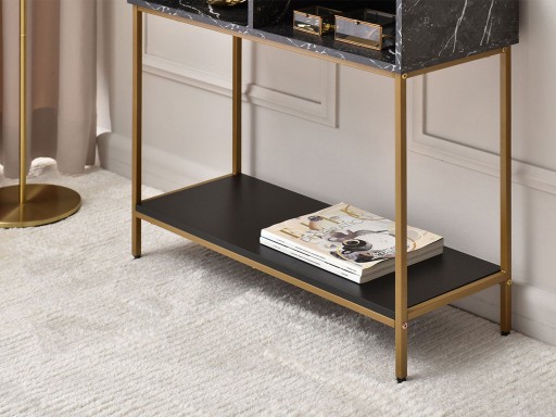 MARMUROWA KONSOLA 80CM FRIDA Z PÓŁKĄ 2 WNĘKAMI ZŁOTE NOGI DO PRZEDPOKOJU