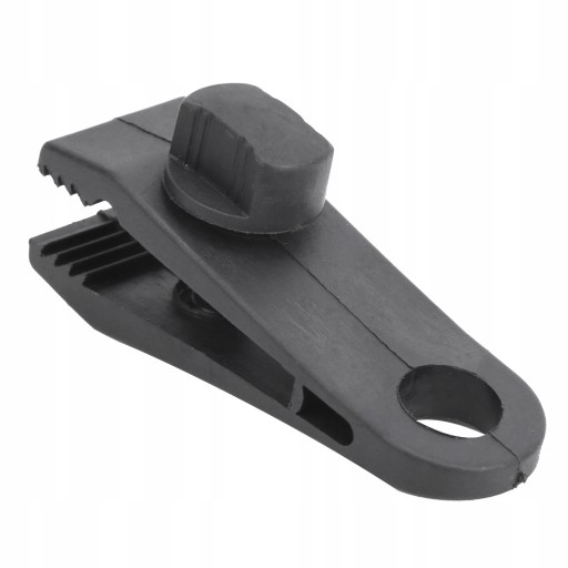 2. Na ustach uchwytu znajdują się zęby, usta w kształcie koła zębatego sprawiają, że klips mocno gryzie plandekę