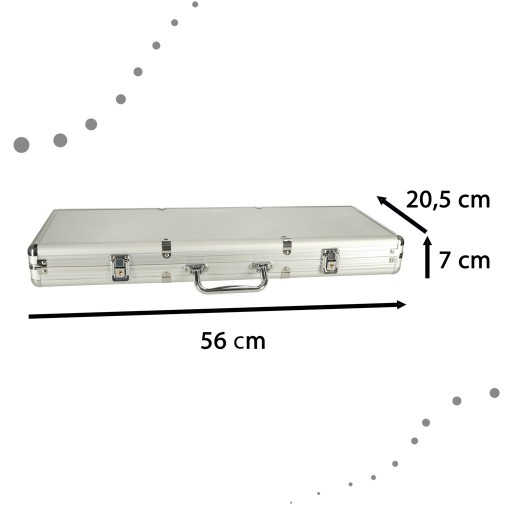 POKER ZESTAW DO GRY W WALIZCE 500 ŻETONÓW 2 TALIE KART Odkryj prawdziwie ekscytujący świat pokera z naszym dużym zestawem do gry w walizce. Niezależnie od tego, czy jesteś doświadczonym graczem, czy dopiero zaczynasz swoją przygodę z pokerem, nasz zestaw zapewni Ci wszystko, czego potrzebujesz do fascynujących i zaciętych rozgrywek. Duży zestaw dla prawdziwych pasjonatów Zawiera aż 500 żetonów, co pozwala na prowadzenie długich i emocjonujących partii. Idealny zarówno dla prywatnych domowych rozgrywek, jak i imprez z przyjaciółmi. Dwie, czytelne talie kart Oferują jeszcze więcej możliwości i wariantów gier. Rozwijaj swoje umiejętności w różnych stylach pokera i innych popularnych gier karcianych. Dodatkowe elementy dla urozmaicenia gry W zestawie znajdziesz również kostki, które otwierają drzwi do różnych odmian gier, oraz dwa zamki, które zabezpieczą zawartość walizki. Estetyczna i wytrzymała walizka Zaprojektowana z myślą o wygodzie przenoszenia i bezpieczeństwie elementów zestawu. Wykonana z trwałych materiałów, z ciekawym designem. Zestaw dla nauki panowania nad sobą Gra w pokera nie tylko dostarcza emocji, ale również rozwija umiejętności takie jak spostrzegawczość, zdolność podejmowania decyzji i kontrola nad emocjami. Zawartość zestawu: Żetony x500 Talie kart x2 Kostki x5 Kluczyk x2 Walizka Wymiary: Żeton: 4 cm Walizka: 56 cm x 20,5 cm x 7 cm Opakowanie: 60 cm x 27 cm x 10 cm Odkryj magię pokera z naszym kompletnym zestawem do gry w walizce. Gotów na emocje i rywalizację? To idealny zestaw dla Ciebie!
