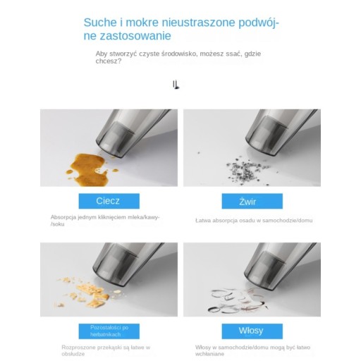 1. Odkurzacz samochodowy nadaje się do małych samochodów i zasilania samochodowego DC 12V. Nie nadaje się do dużych ciężarówek z zasilaniem DC 24 V. Aby uniknąć złego doświadczenia użytkownika, przed zakupem upewnij się, że zapoznałeś się z takimi alertami.