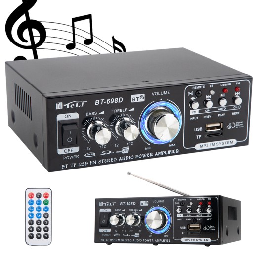 SAMOCHODOWY WZMACNIACZ MOCY HIFI CYFROWY AUDIO STEREO 2-KANAŁOWY BT-698D
