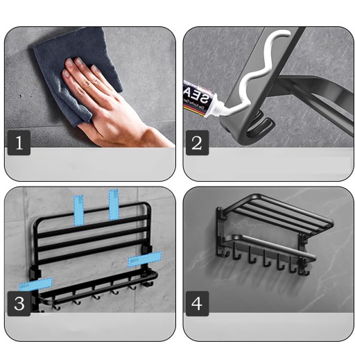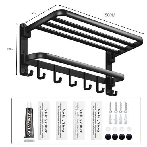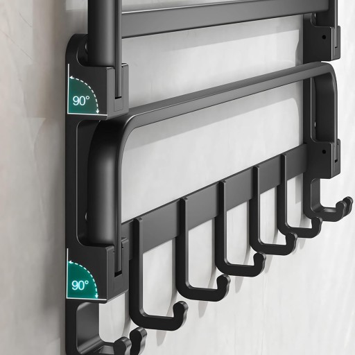 👕【Dwuwarstwowa składana konstrukcja z haczykiem】: wieszak na ręczniki łazienkowy ma dwuwarstwową składaną konstrukcję, którą można złożyć, gdy nie jest używana, aby zaoszczędzić miejsce. Konstrukcja haczyka pozwala na przechowywanie większej liczby akcesoriów łazienkowych, takich jak kulki do ręczników, maszynki do golenia i różne szczotki, poprawiając łatwość użytkowania i opłacalność.