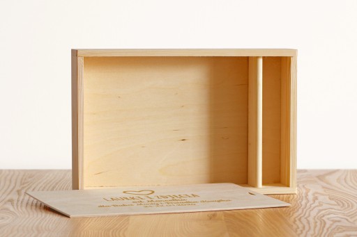 DREWNIANE PUDEŁKO NA ZDJĘCIA I LAURKI Z PRZEGRODĄ NA PENDRIVE: