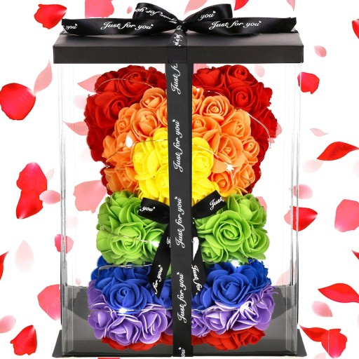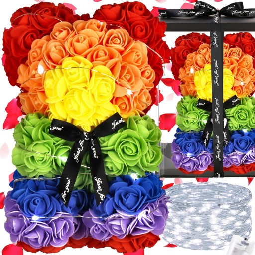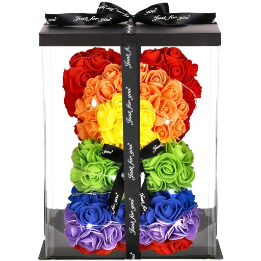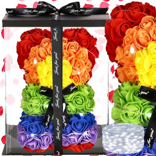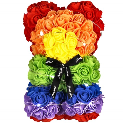 MIŚ Z RÓŻ LAMPKI 20 LED ZESTAW GIFTBOX TĘCZOWY